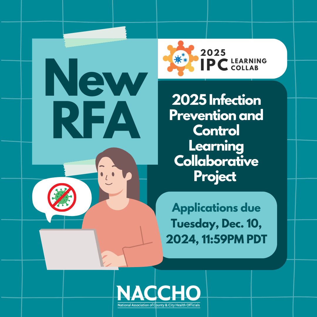 NACCHO is excited to offer another iteration of the Infection Prevention and Control (IPC) Learning Collaborative Project to provide technical assistance, mentorship, and funding for local health departments (LHDs) to learn IPC fundamentals and adult learning principles. LHDs may apply as mentors or mentees. Learn more and apply by December 10, 2024, 11:59PM PDT: https://www.naccho.org/blog/articles/rfa-ipc-lc-2025