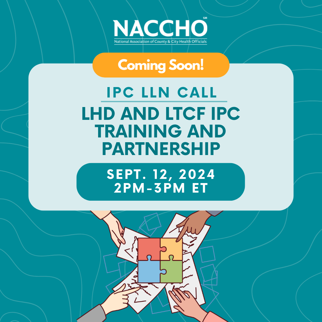 Join NACCHO this Thursday, September 12, 2pm-3pm ET for our September Infection Prevention and Control (IPC) Living Learning Network (LLN) Call on local health department (LHD) and long-term care facility (LTCF) training and partnership! Register here: https://naccho.zoom.us/webinar/register/WN_h8-gznlgSkmC0j2Ys0DmSA#/registration